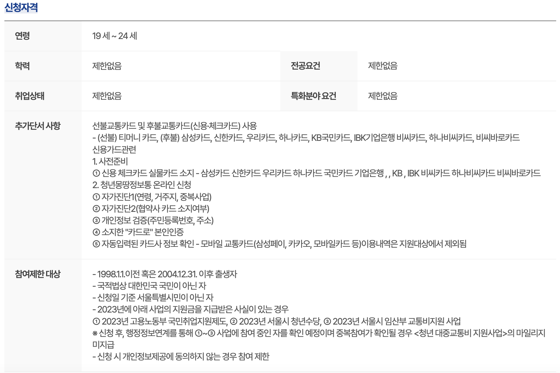 나이만 해당이 되신다면 특별한 조건없이 신청이 가능하오나 추가단서 사항 항목과 참여제한 대상 항목을 꼭 읽어보시고 체크하신뒤에 신청 하세요