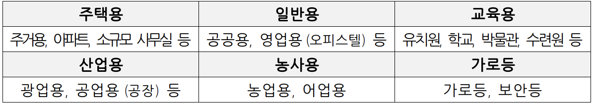 ** 비주거용 요금 부과대상 : 통신·기계장비, 사무실, 소형점포 등 주거용으로 사용하지 않는 시설 (한국전력 기본공급약관시행세칙 제48조 제10항)