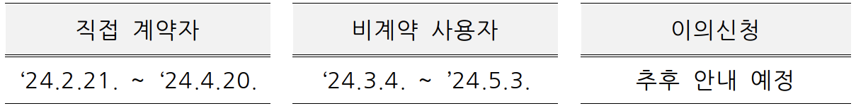 * 직접 계약자, 비계약 사용자 각각 접수개시 1일차, 3일차는 홀수, 2일차, 4일차는 짝수